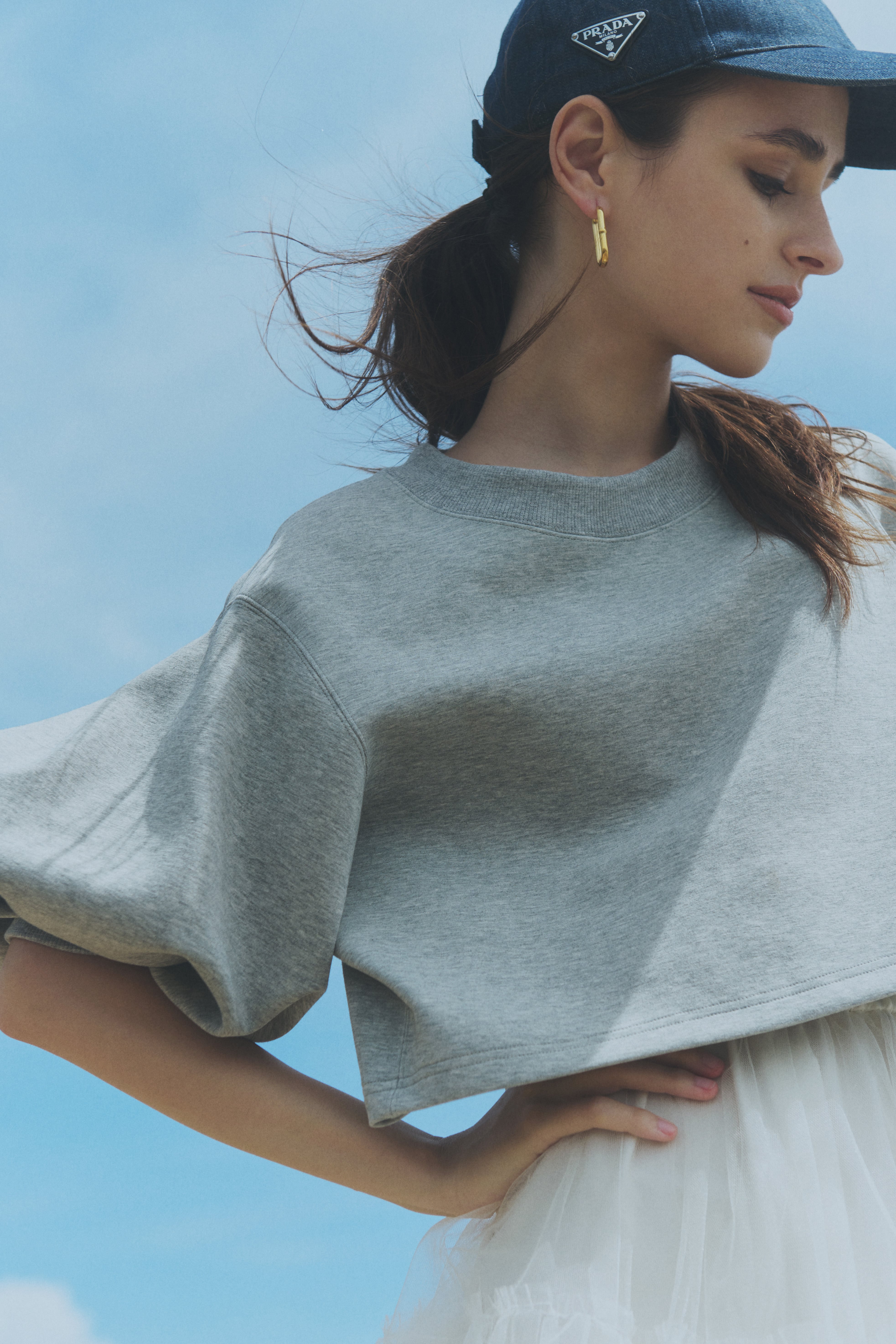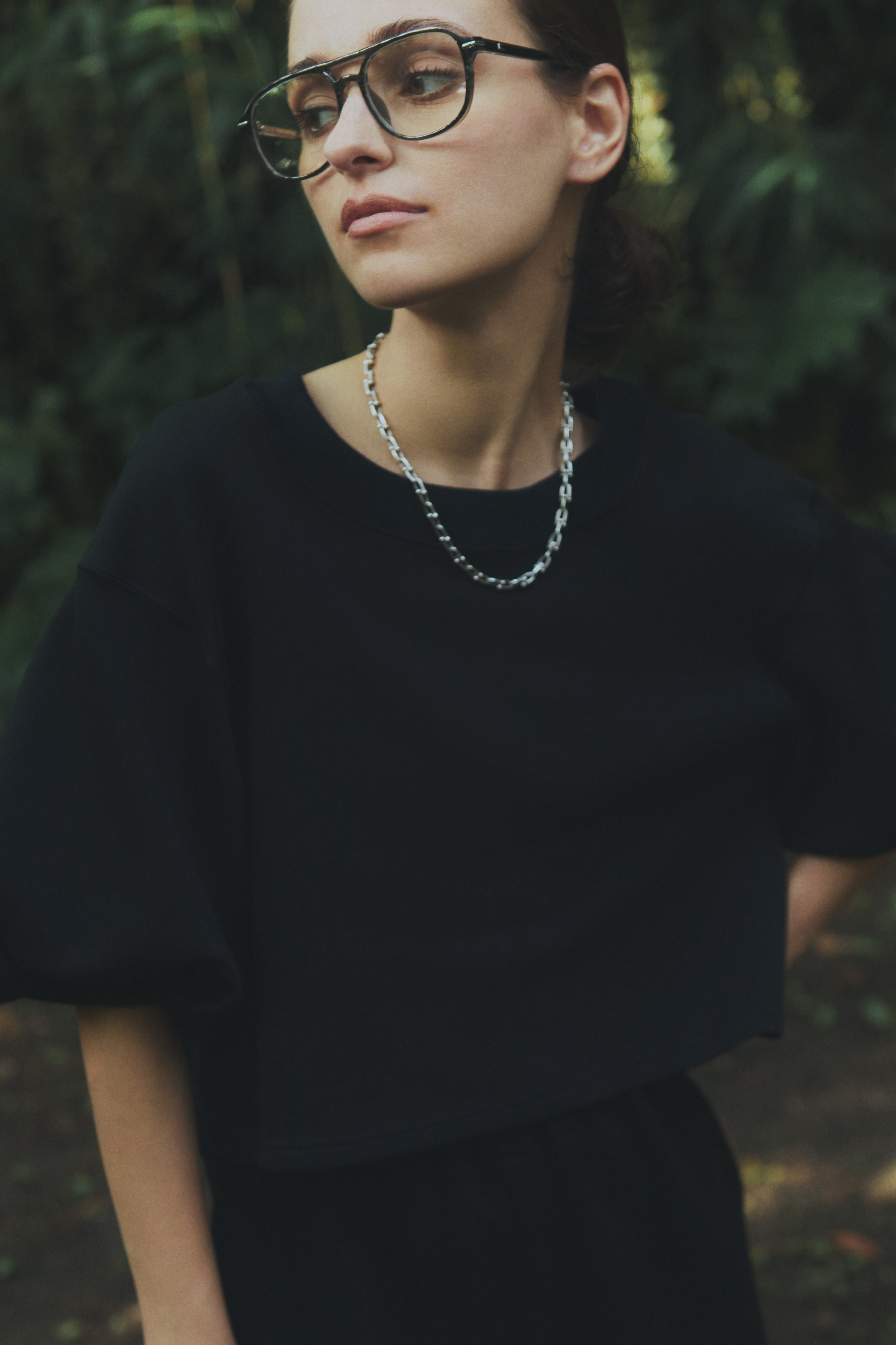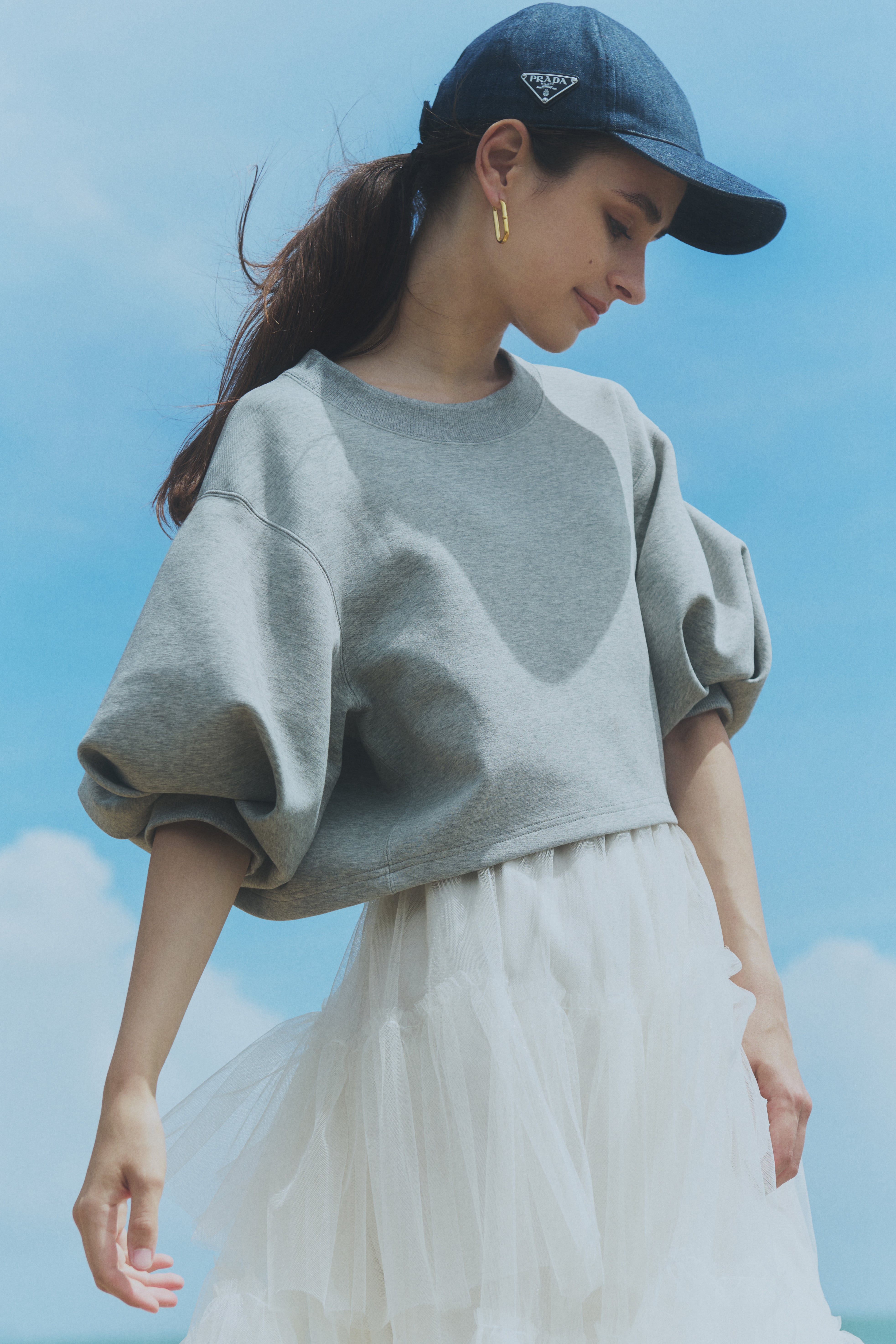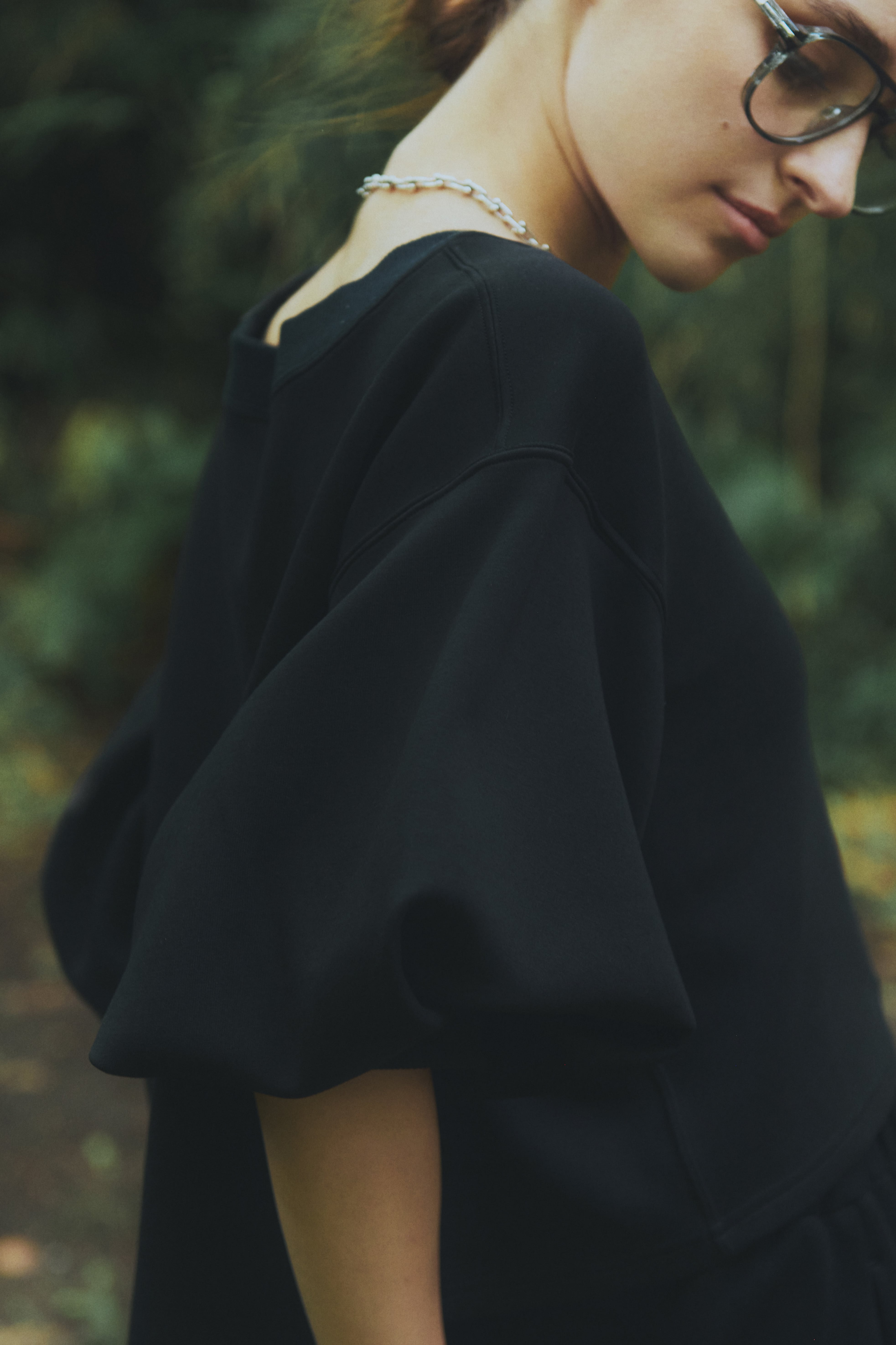 ボリュームのあるバルーン袖とコンパクトな丈感がポイントのスウェットプルオーバーは大人の女性が品よく着れる綺麗めで上質なスウェットです。