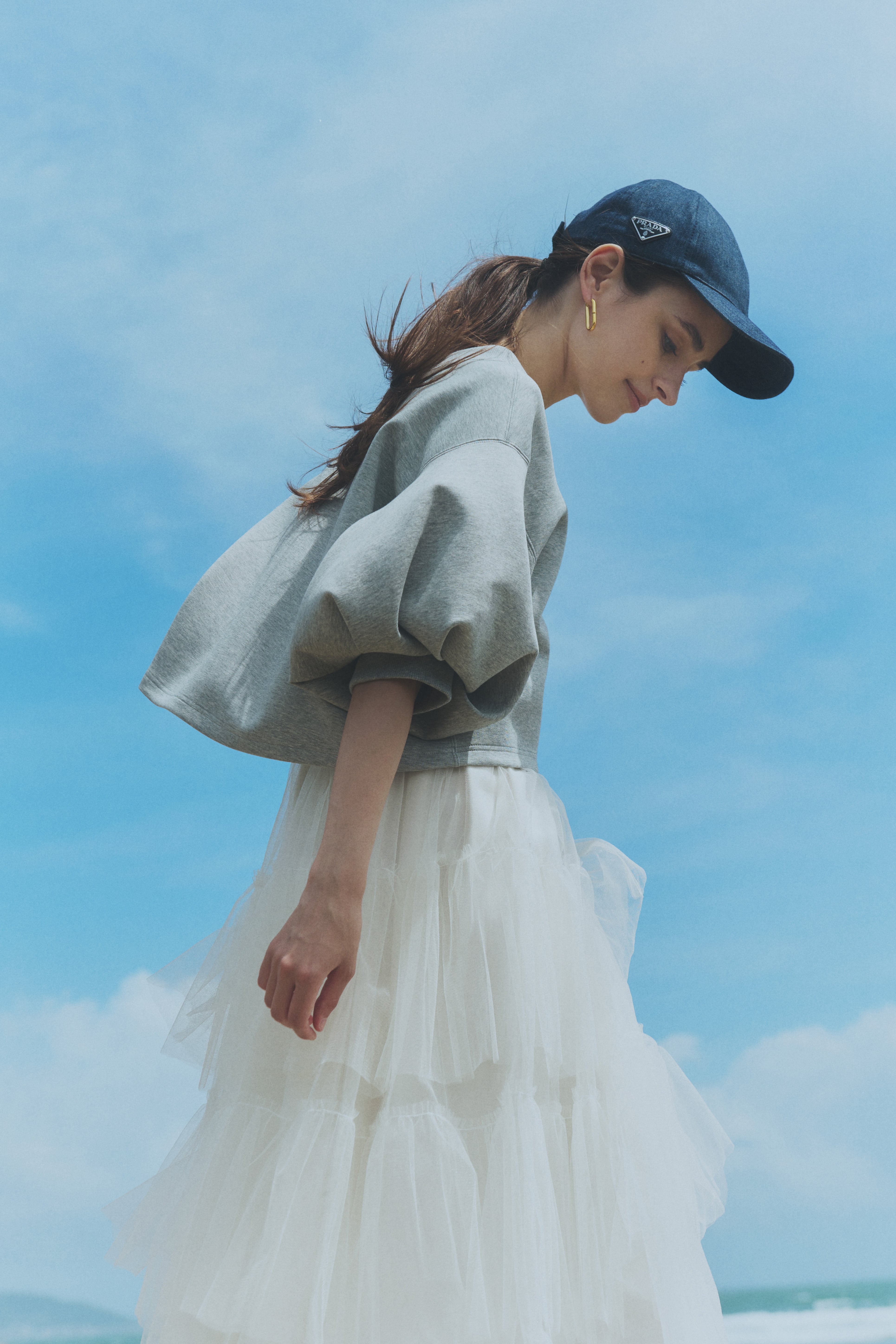 またジャガードスカートやチュールスカート、どんなボトムともバランスよくマッチするので様々なコーディネートをお楽しみいただけます。