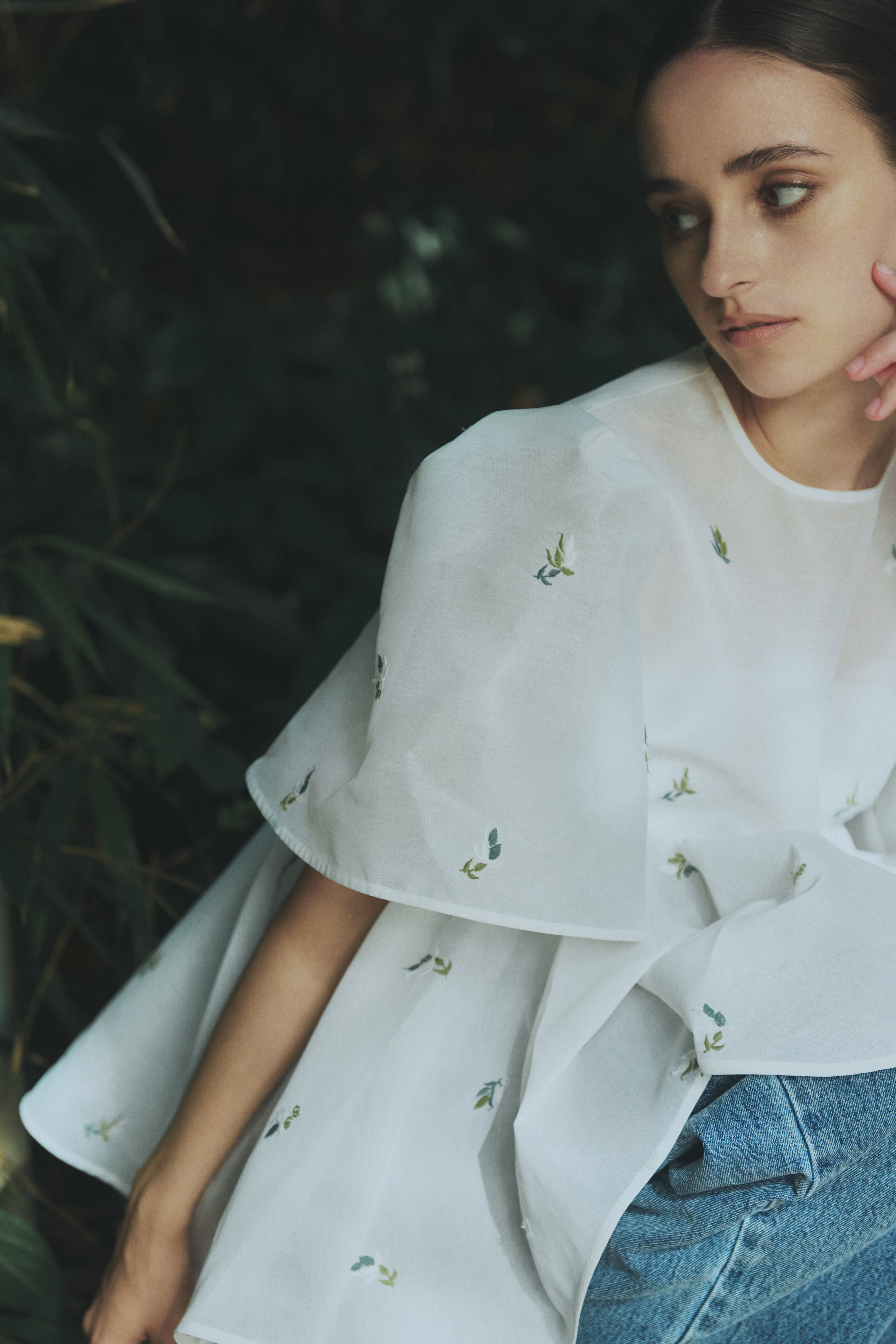 WHITEには2種類のグリーンとアイボリーの刺繍糸で、BLACKには同色の刺繍を施しシックな印象に。
