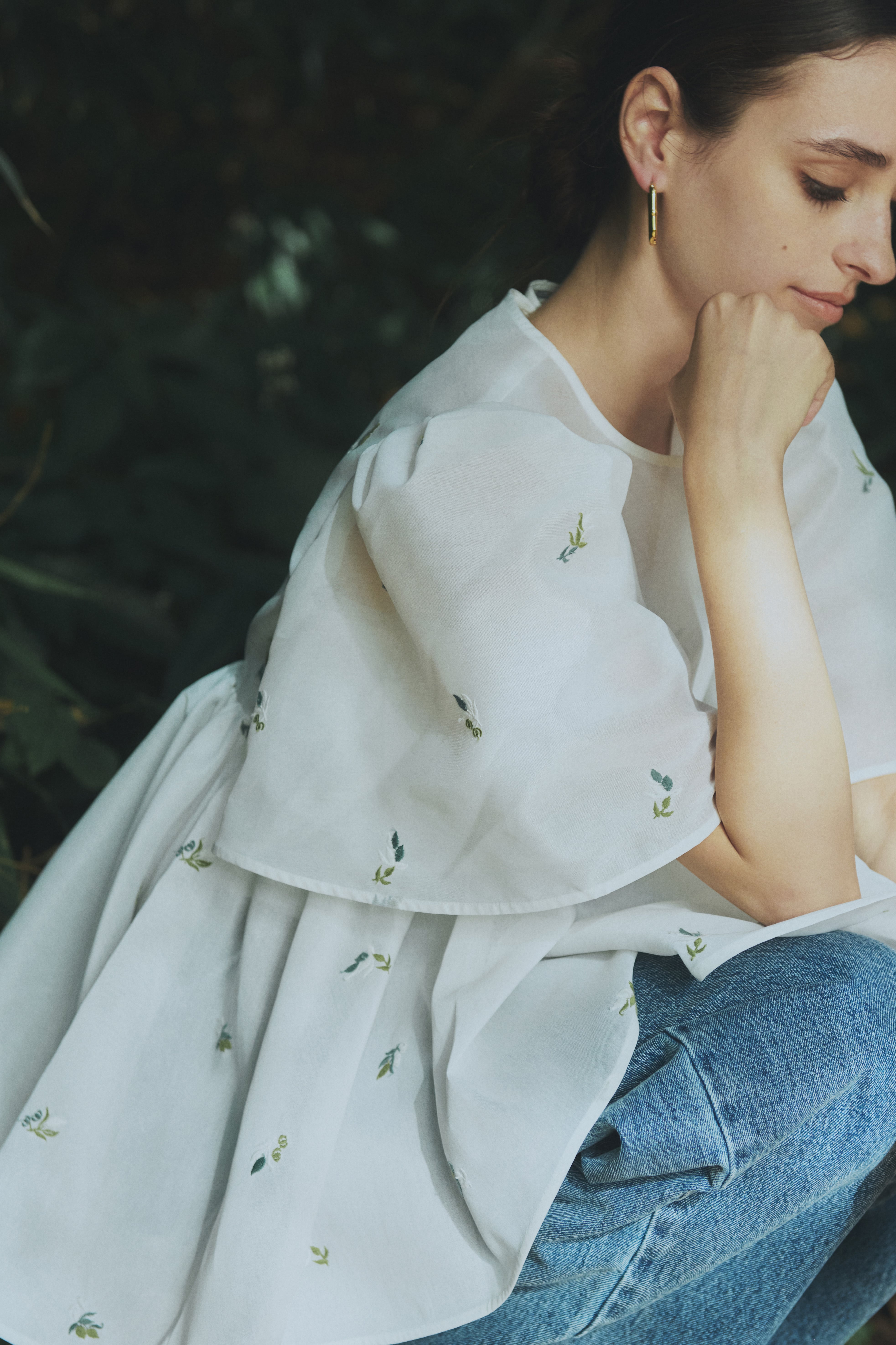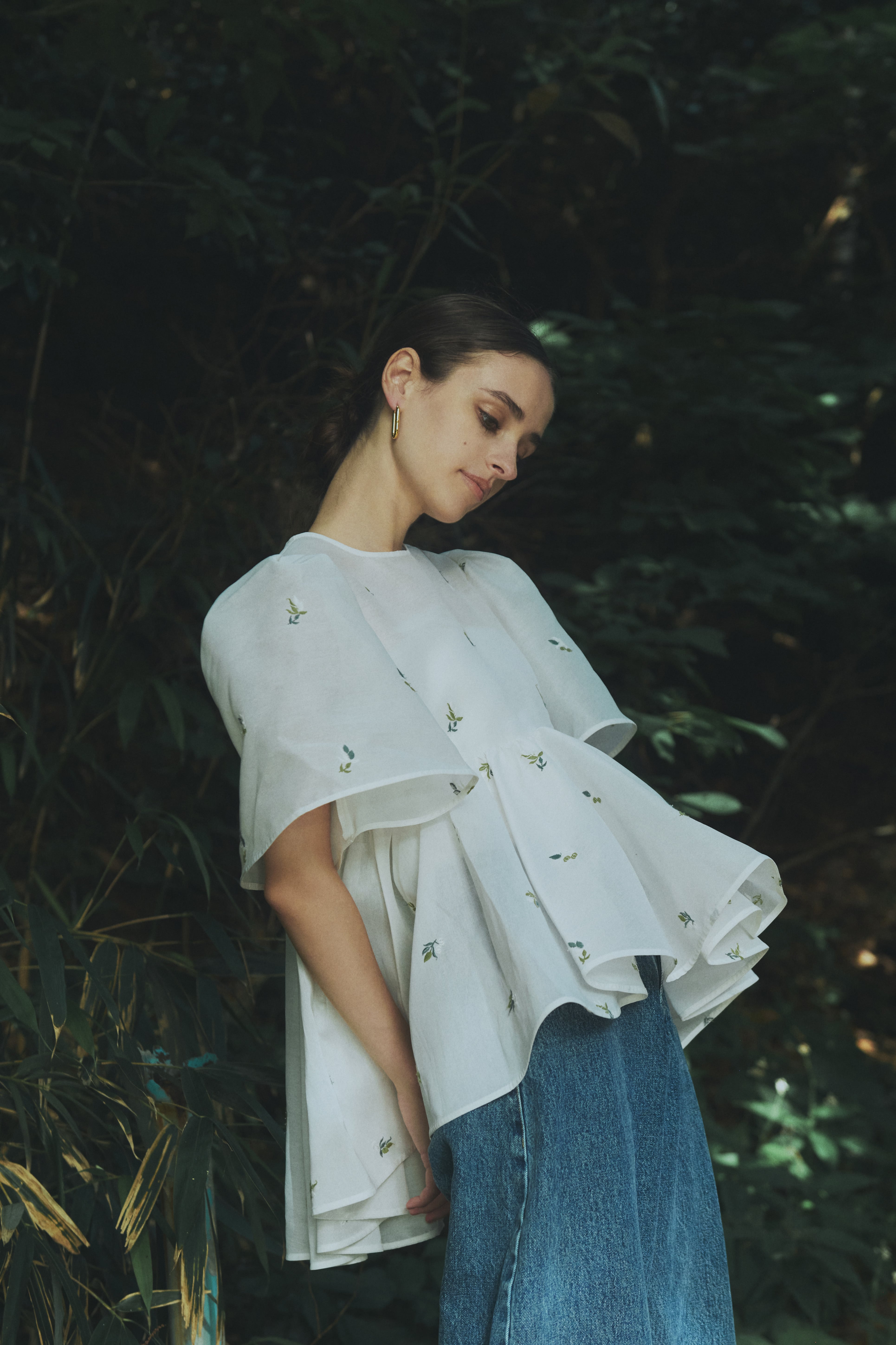 Blueleaオリジナルの刺繍が美しいベルスリーブブラウス