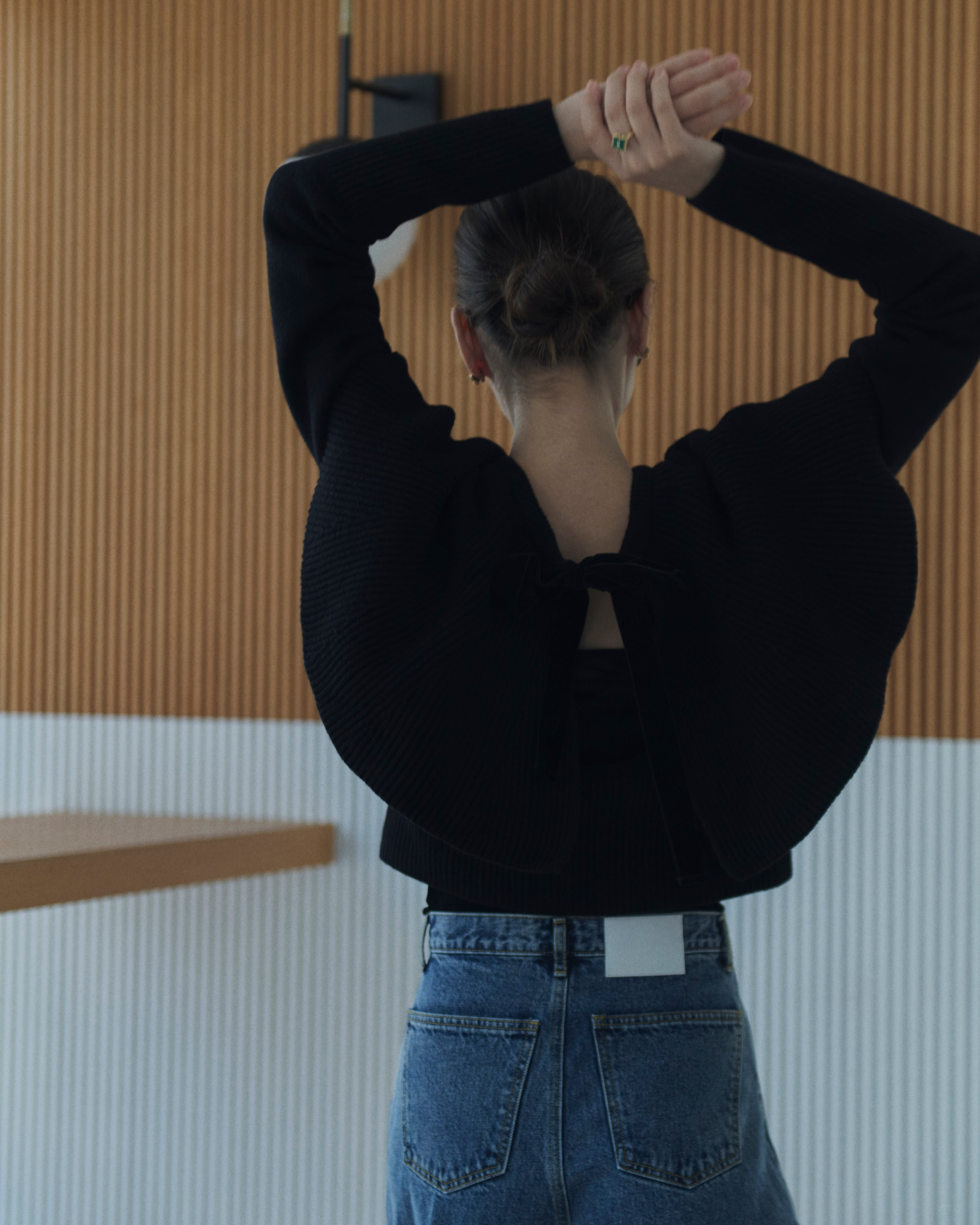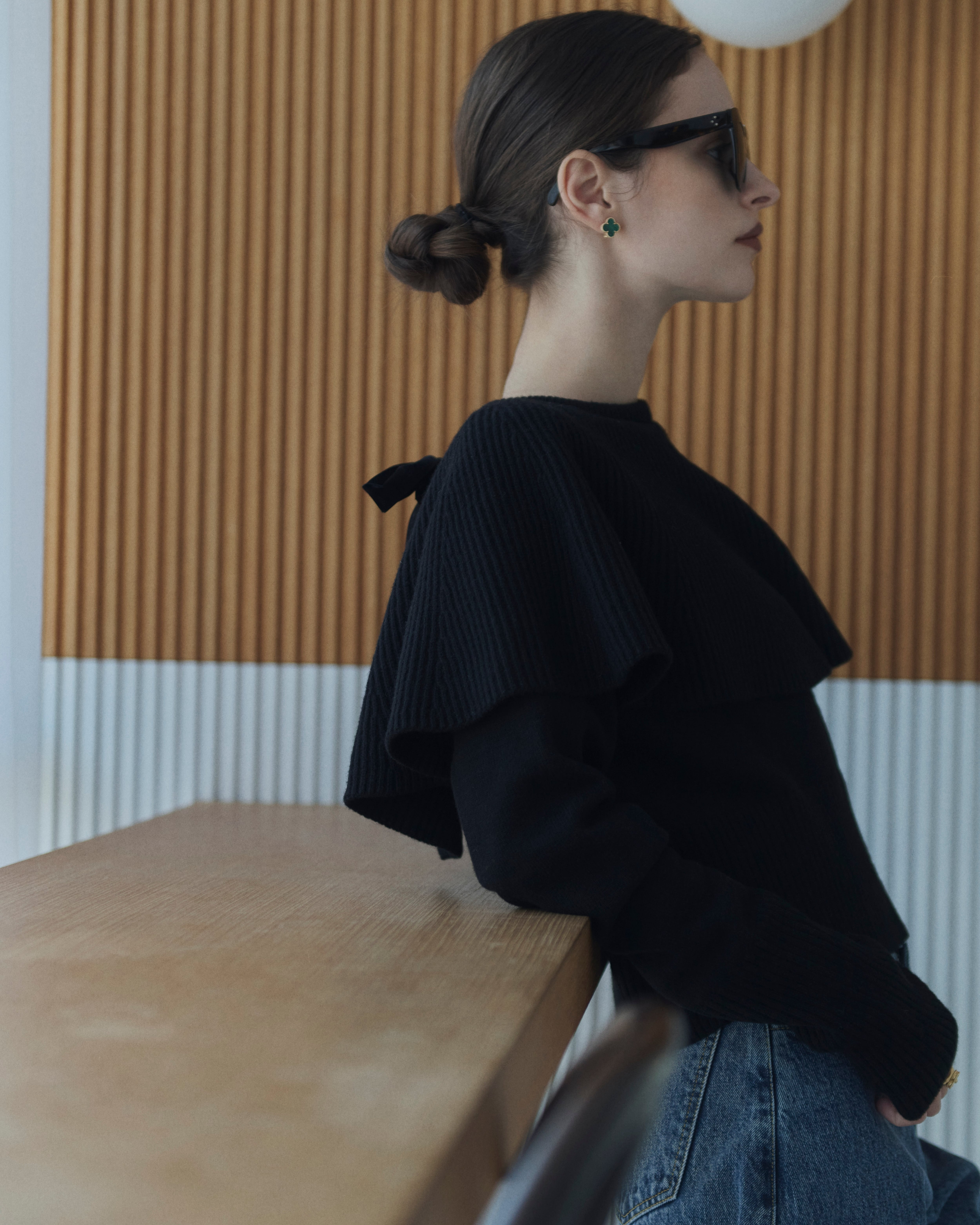 25AWは大きな襟とバックリボンが大人可愛いニットの登場です
