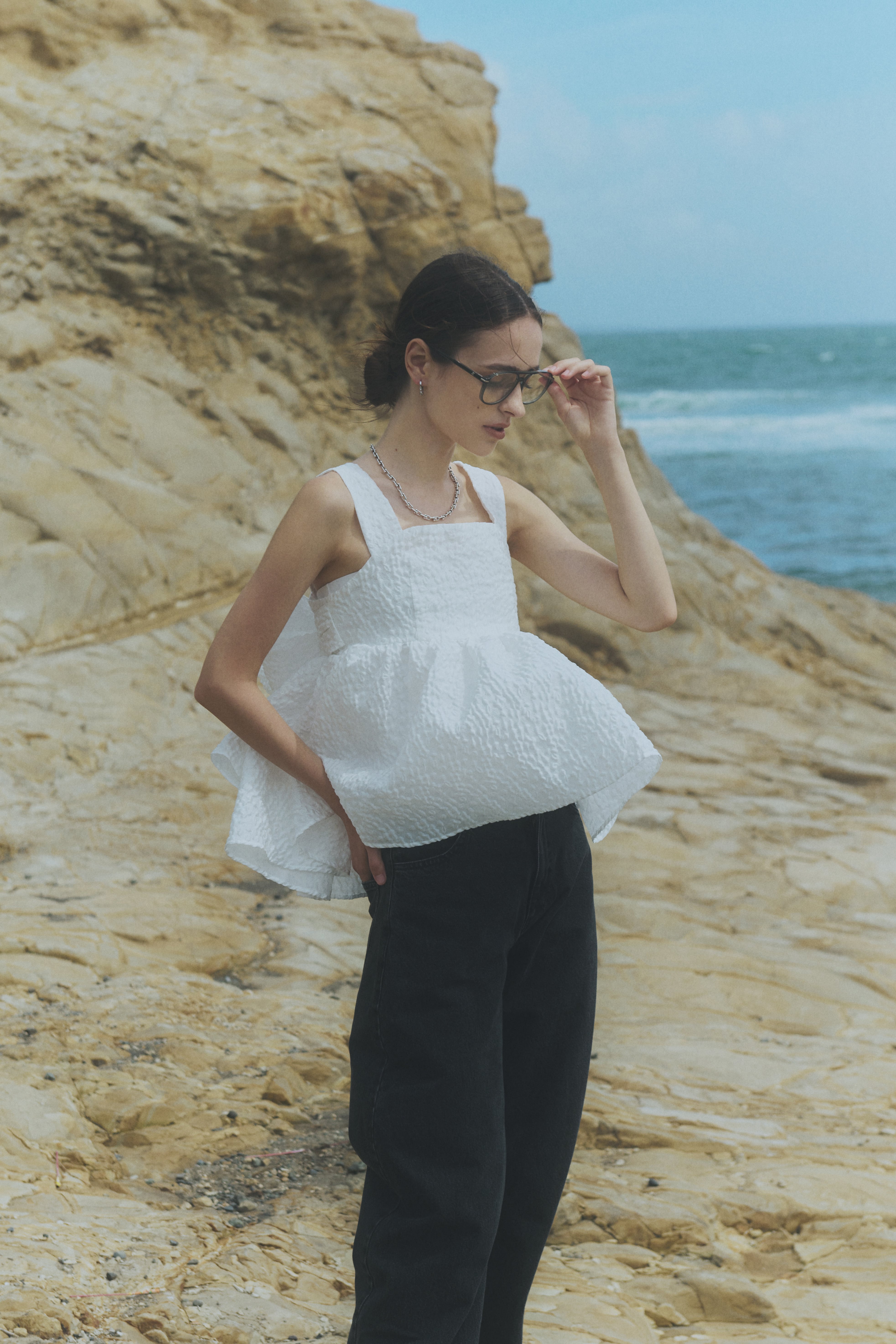 シンプルなデザインながら、独特の丸みを帯びたシルエットは、カジュアルなトップスと合わせても、上質なブラウスと合わせてもバランスよく映えます。ハイウエストなのでスタイルアップ効果も◎デイリーからお出かけまで様々なシーンで活躍すること間違いなしです。