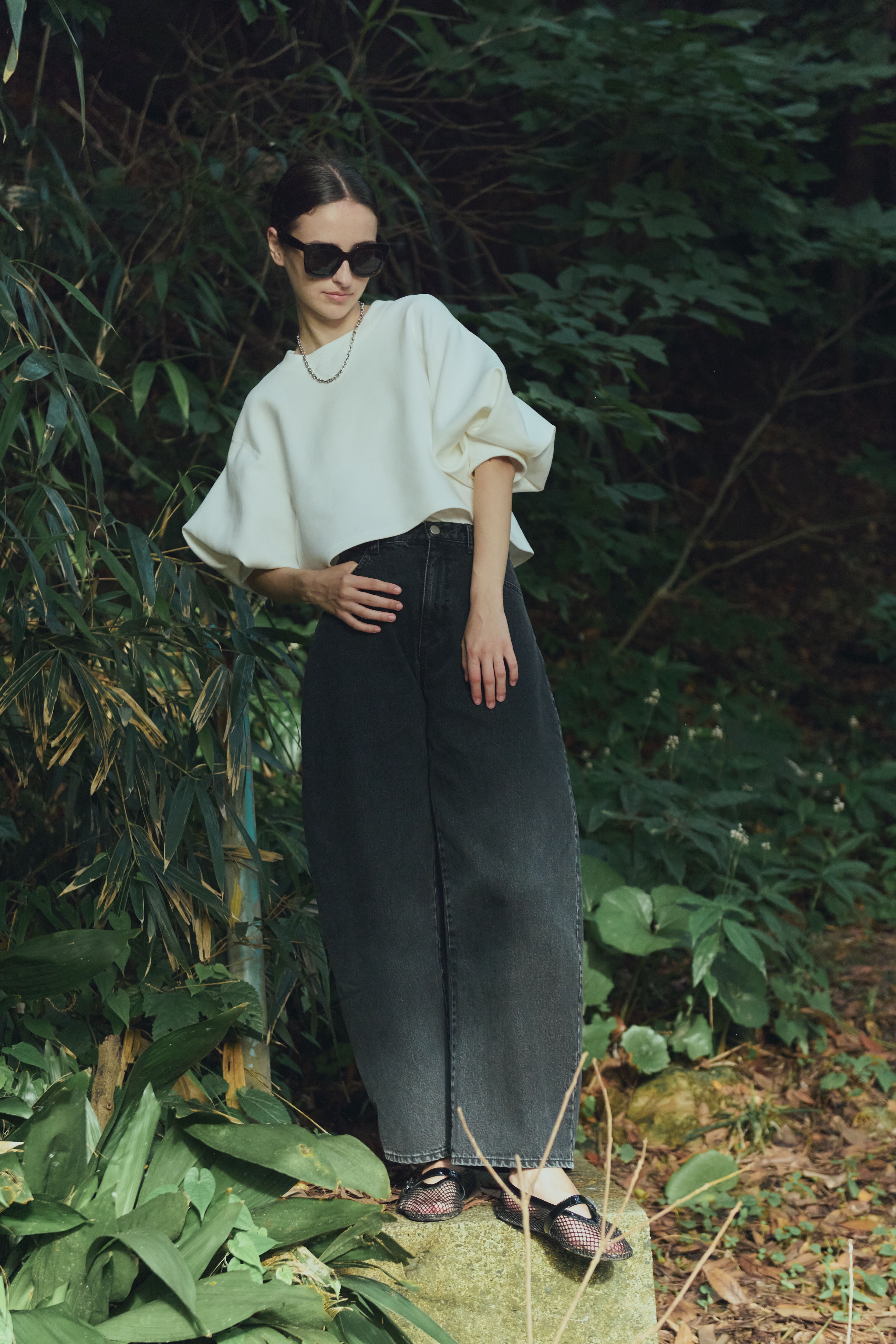 身体のラインを美しく見せるバレルシルエットは、リラックスした着心地を提供しながらもスタイリッシュな印象を与えます。柔らかく心地よい風合いが特徴で、デイリーユースにぴったりです。