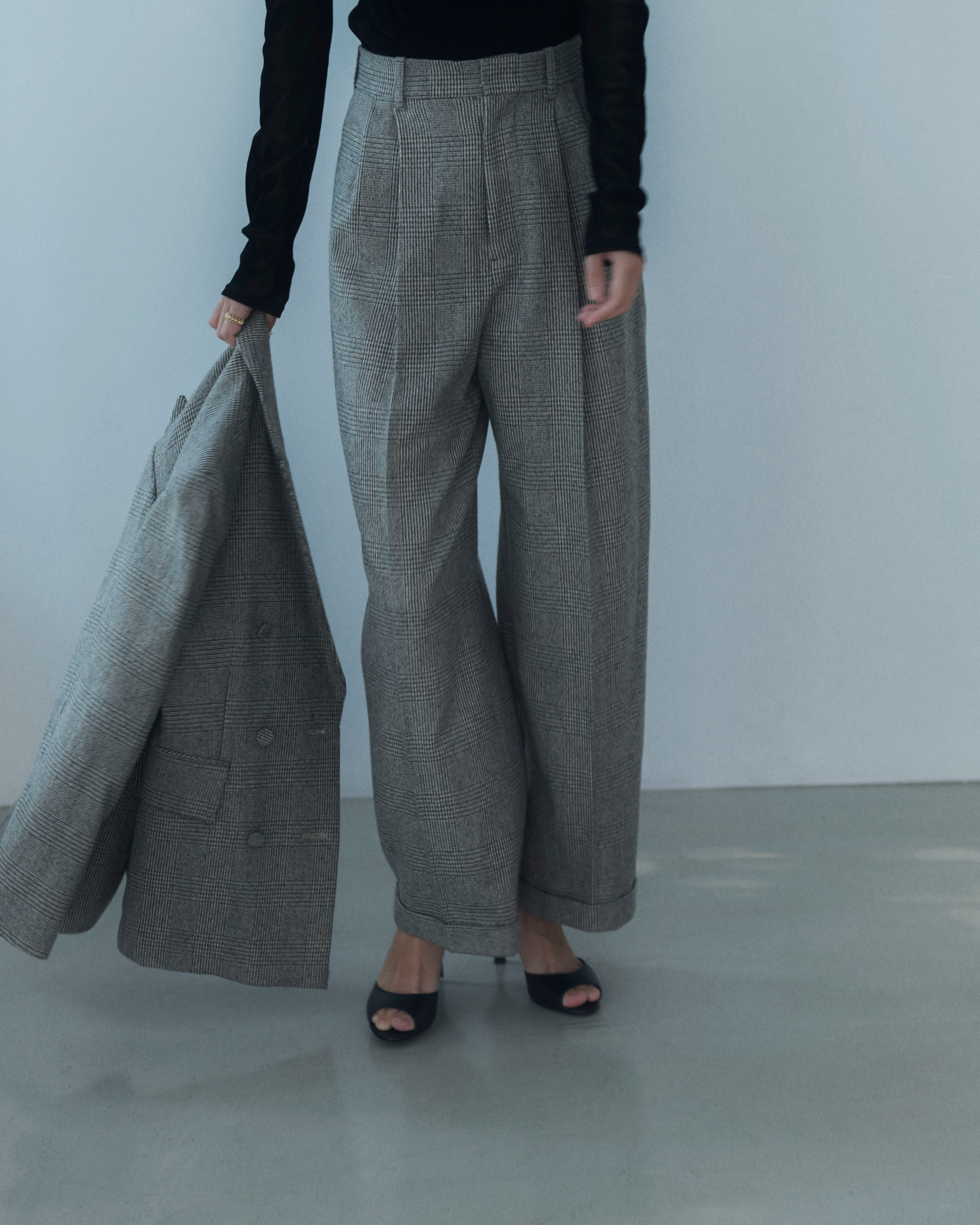 優れたwool gaba素材を使用した滑らかな肌触りと高い品質が自慢のワイドパンツです。
