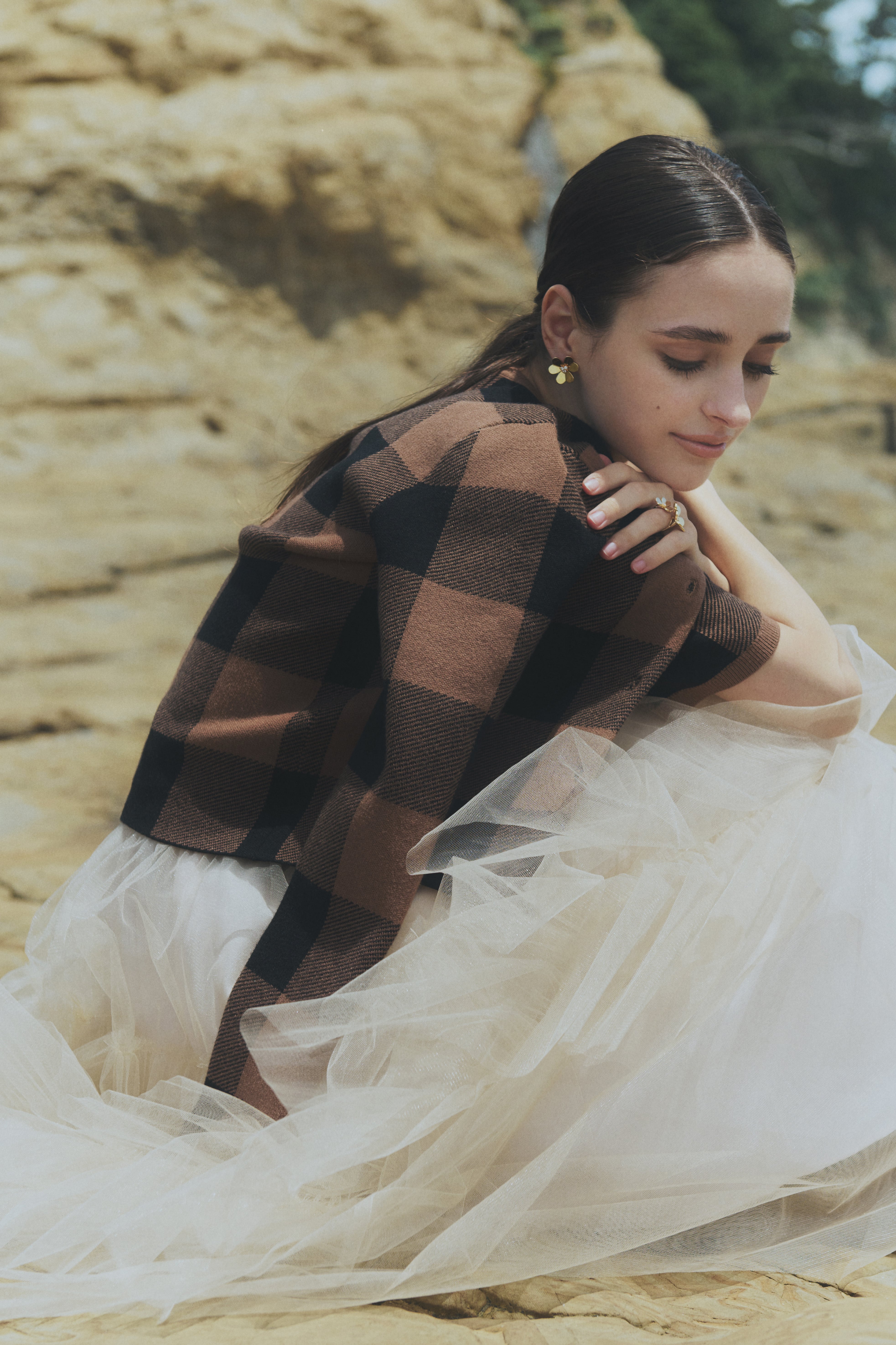 チクチクしない柔らかな手触りのニットなので、思わず素肌にまといたくなるような心地よさです。