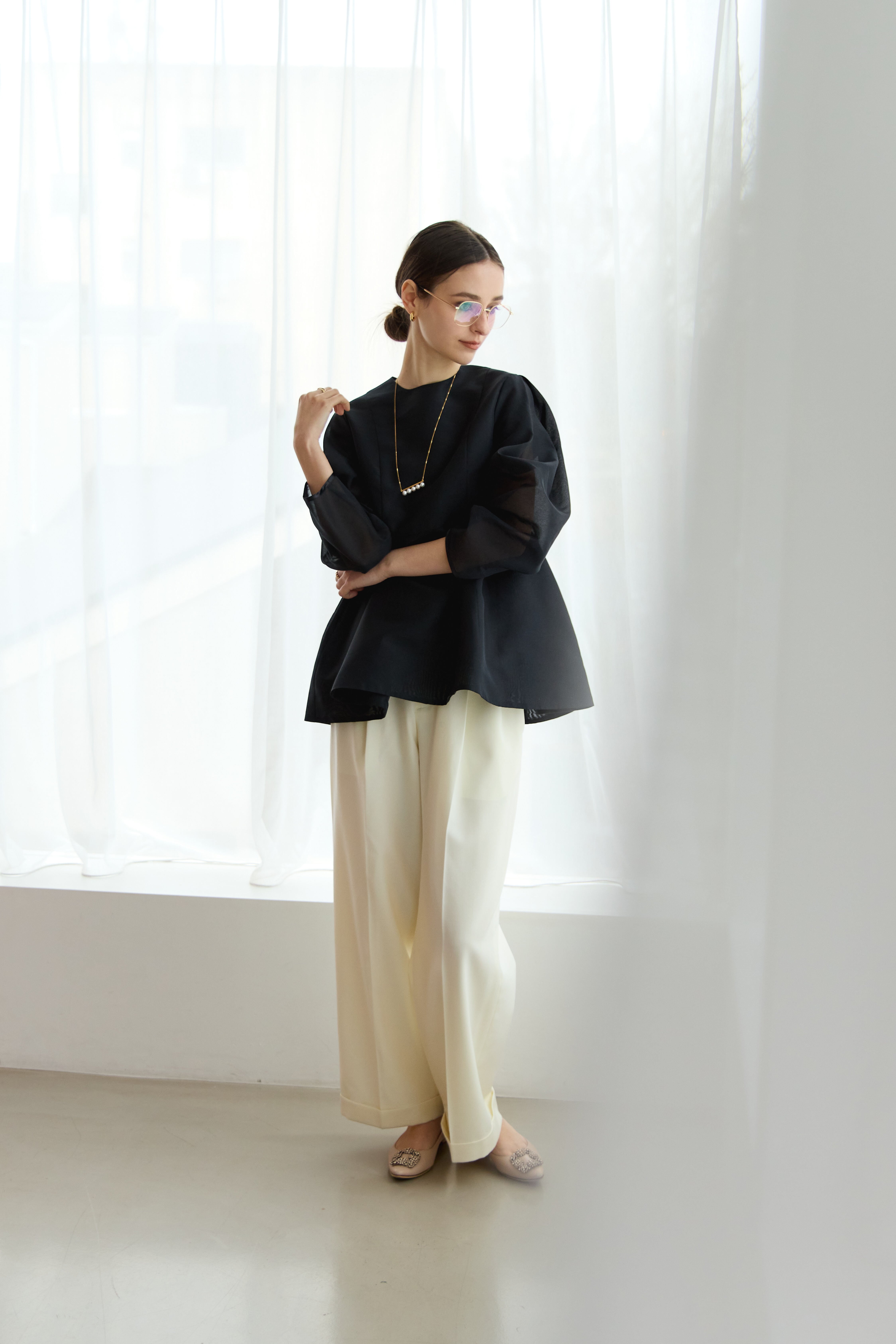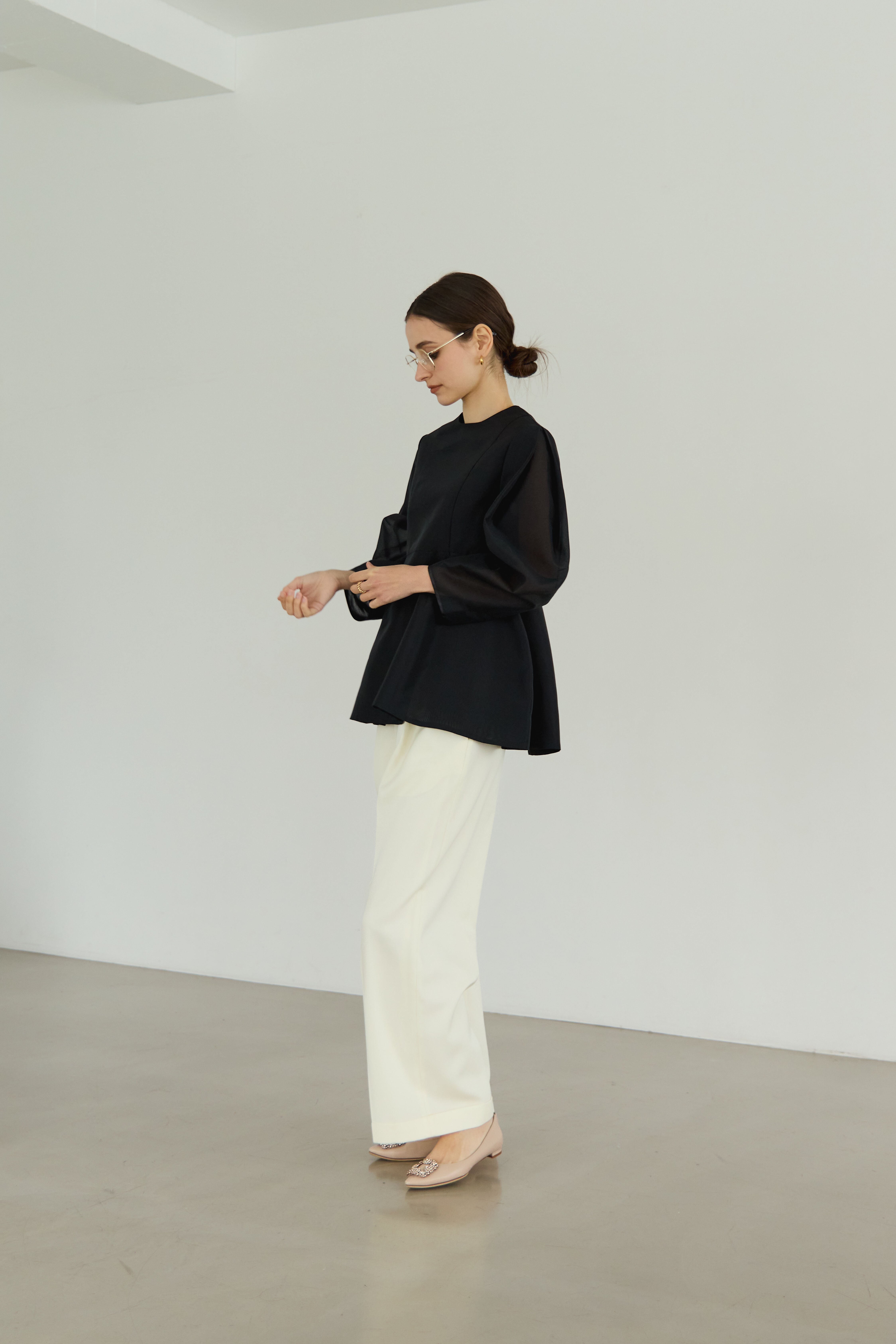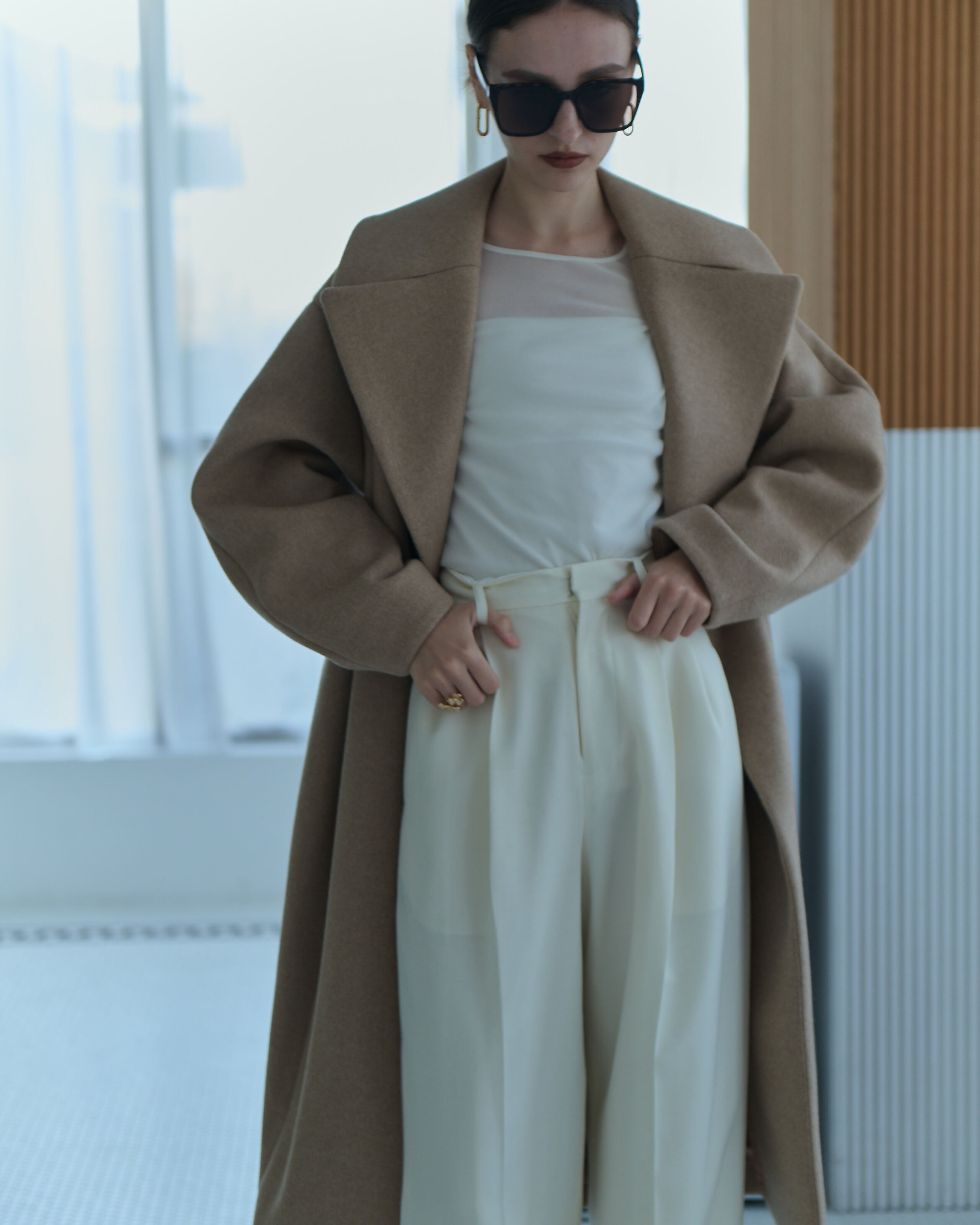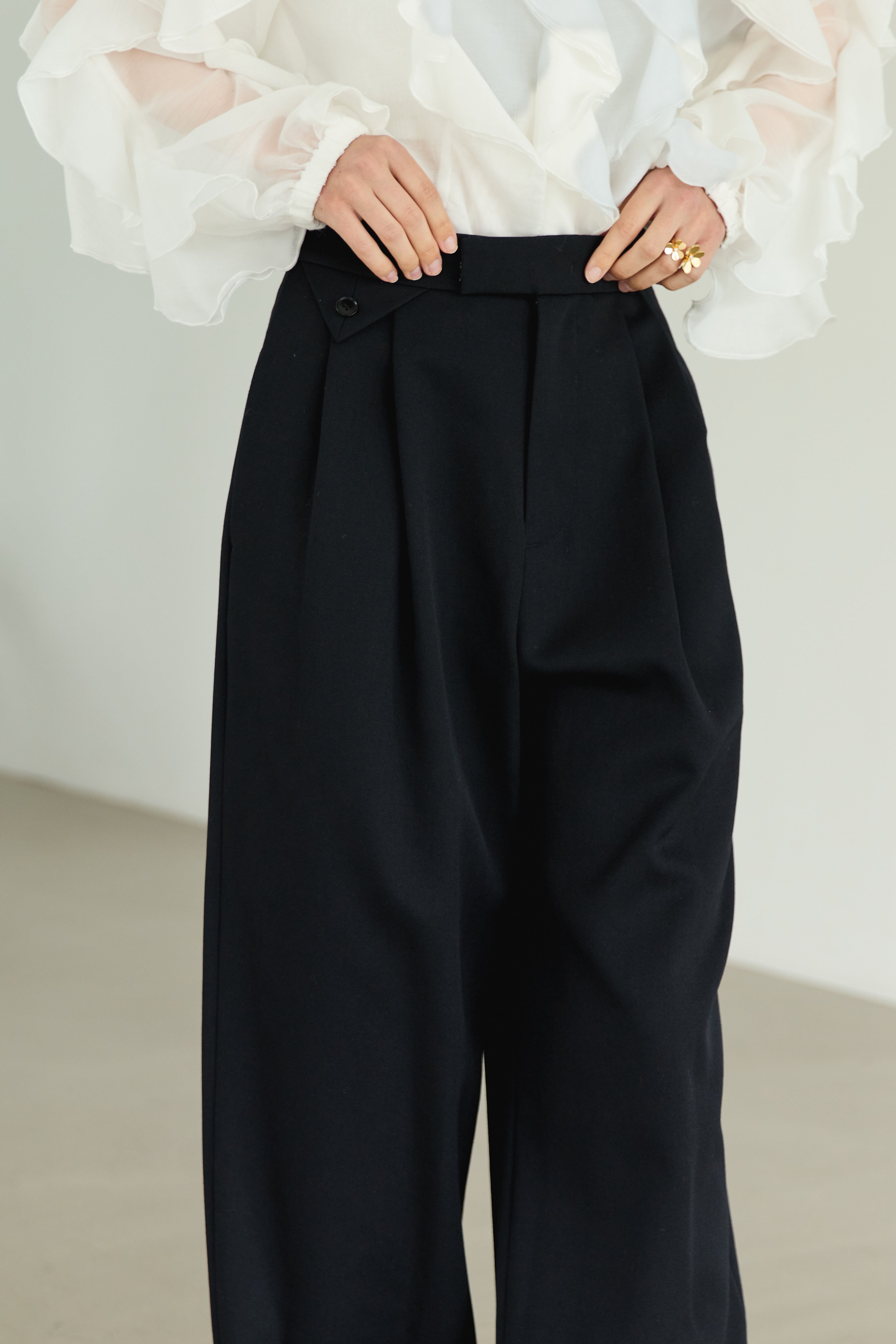 優れたwool gaba素材を使用した滑らかな肌触りと高い品質が自慢のワイドパンツです。