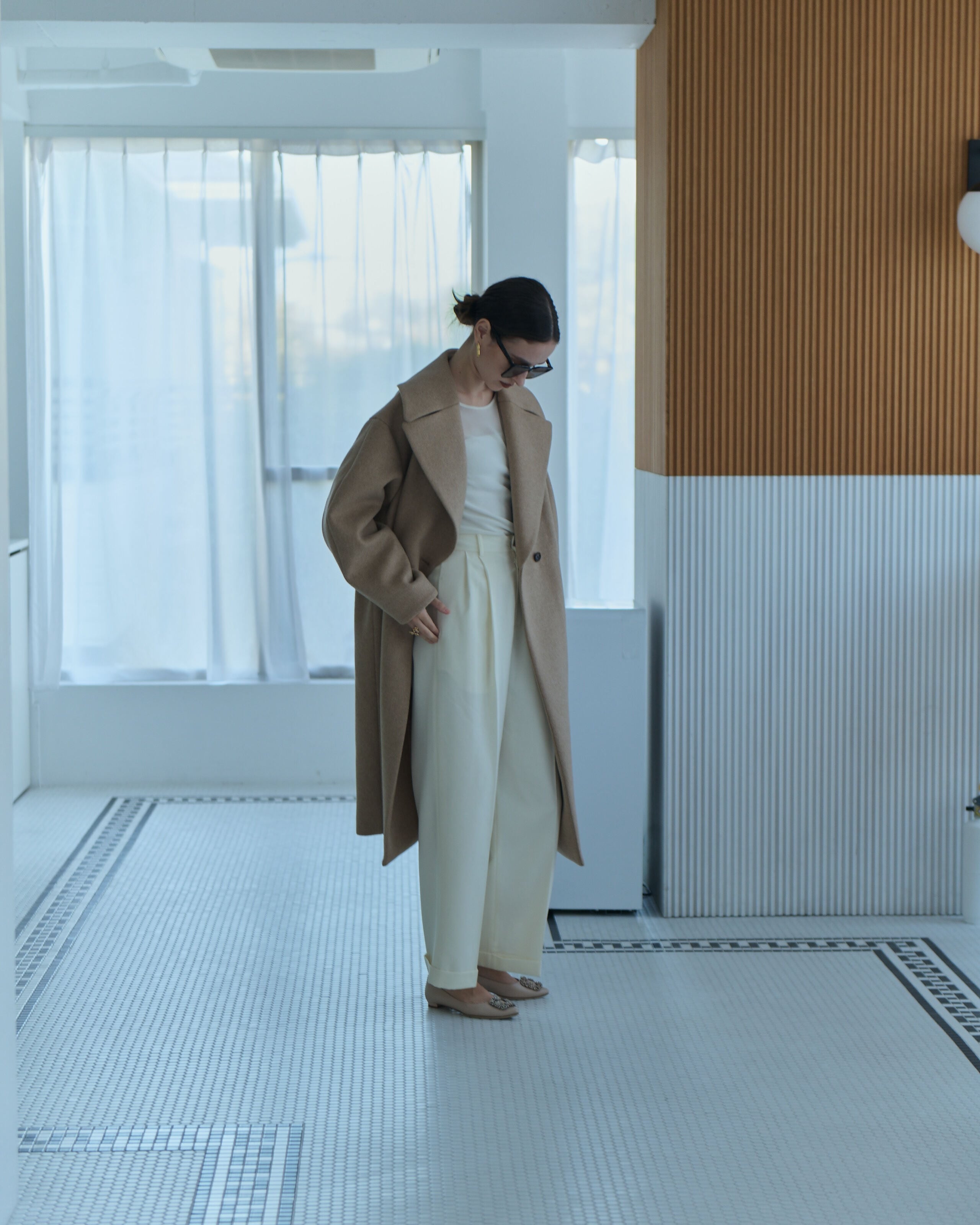 程よく広がりのあるストレートワイドなシルエットが美しいラインを演出し、リラックスした着心地を提供します。