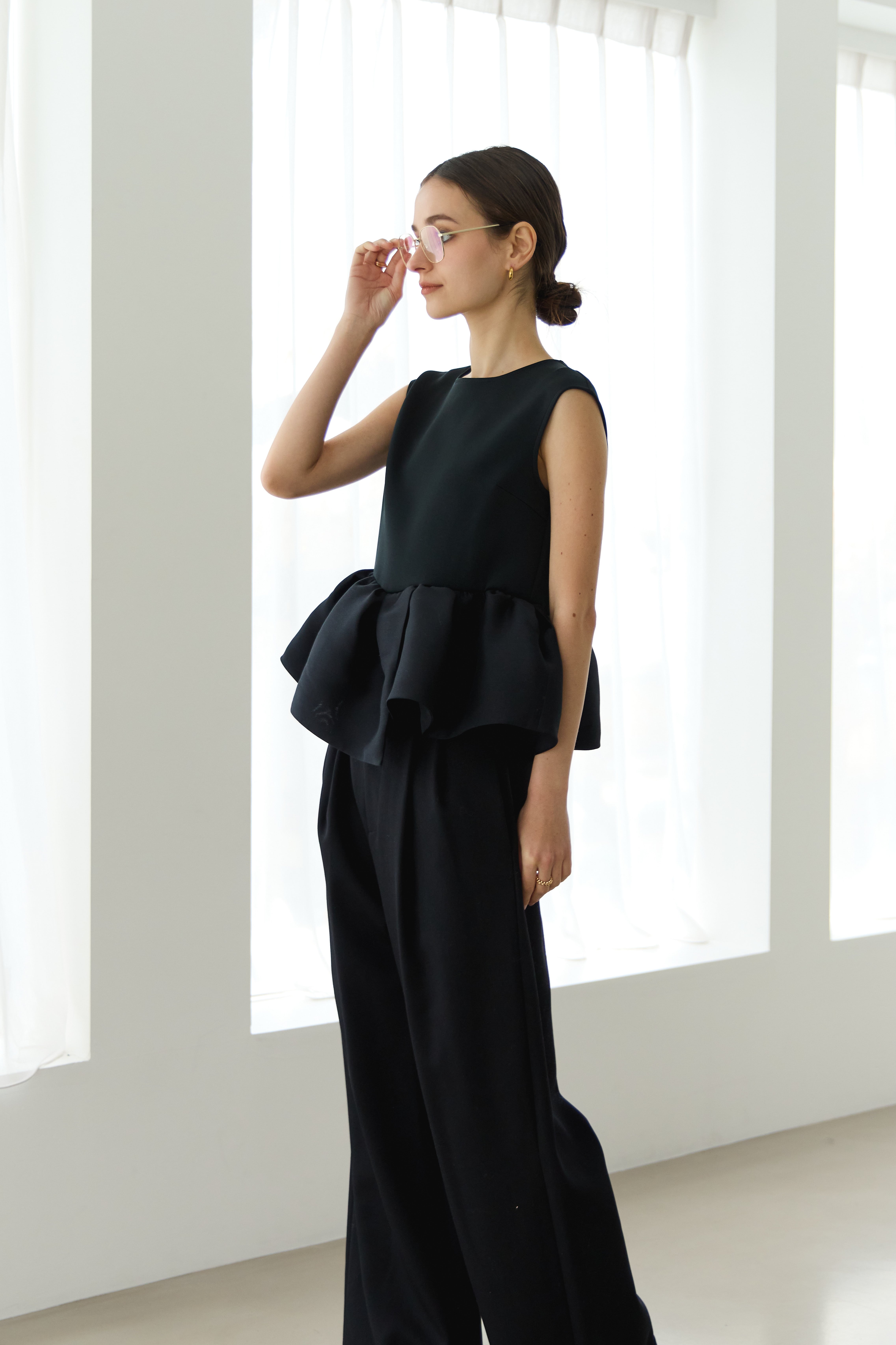 程よく広がりのあるストレートワイドなシルエットが美しいラインを演出し、リラックスした着心地を提供します。
