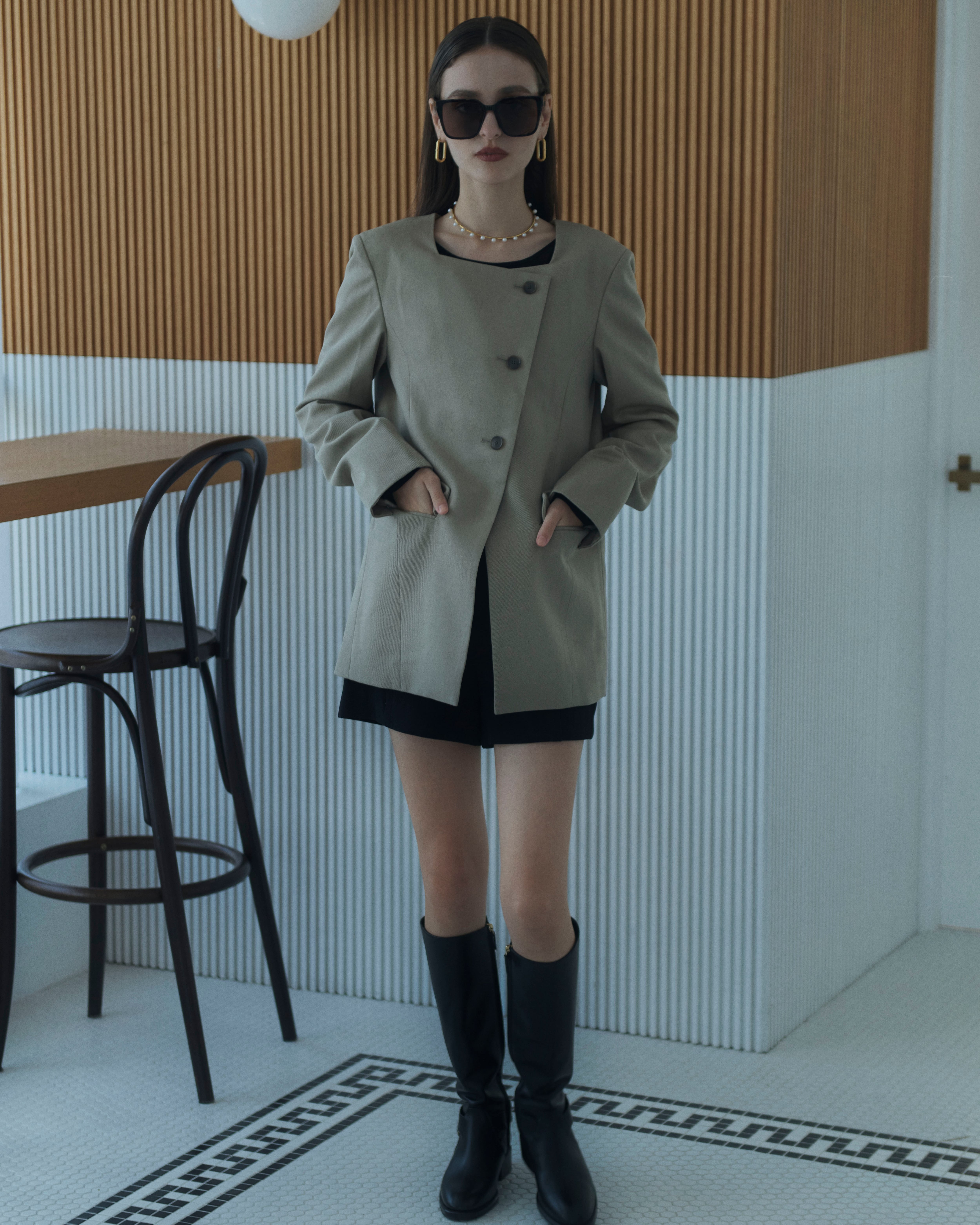 デザインのひねりが効いた美しいこのジャケットは、カジュアルなシーンからフォーマルな場面まで幅広く活躍。上品な雰囲気を楽しみつつ、日常使いにもぴったりのアイテムです。季節を問わずコーディネートの主役になること間違いなしです。