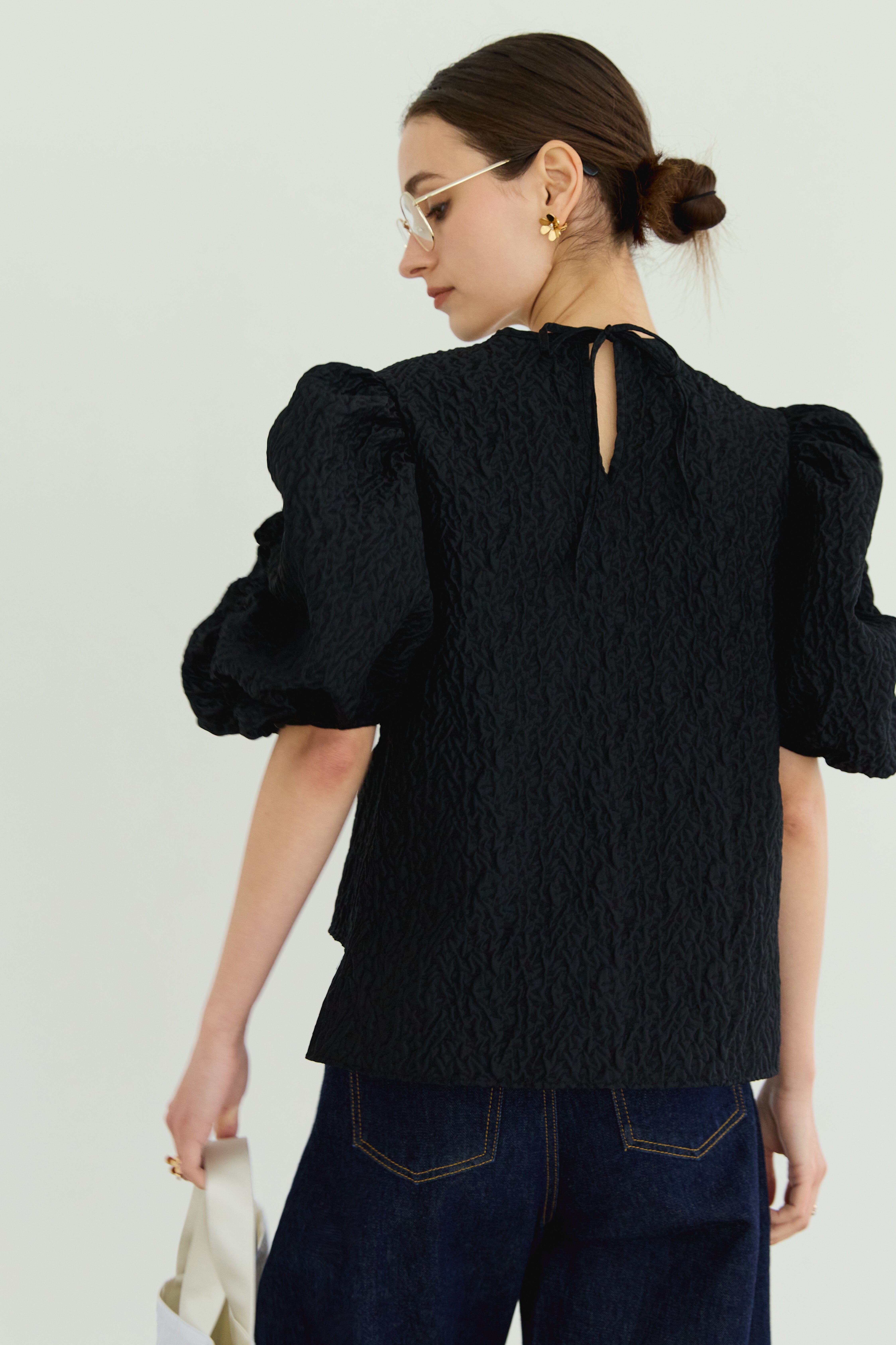 オリジナルジャガード生地を贅沢に使用した spindleブラウス。