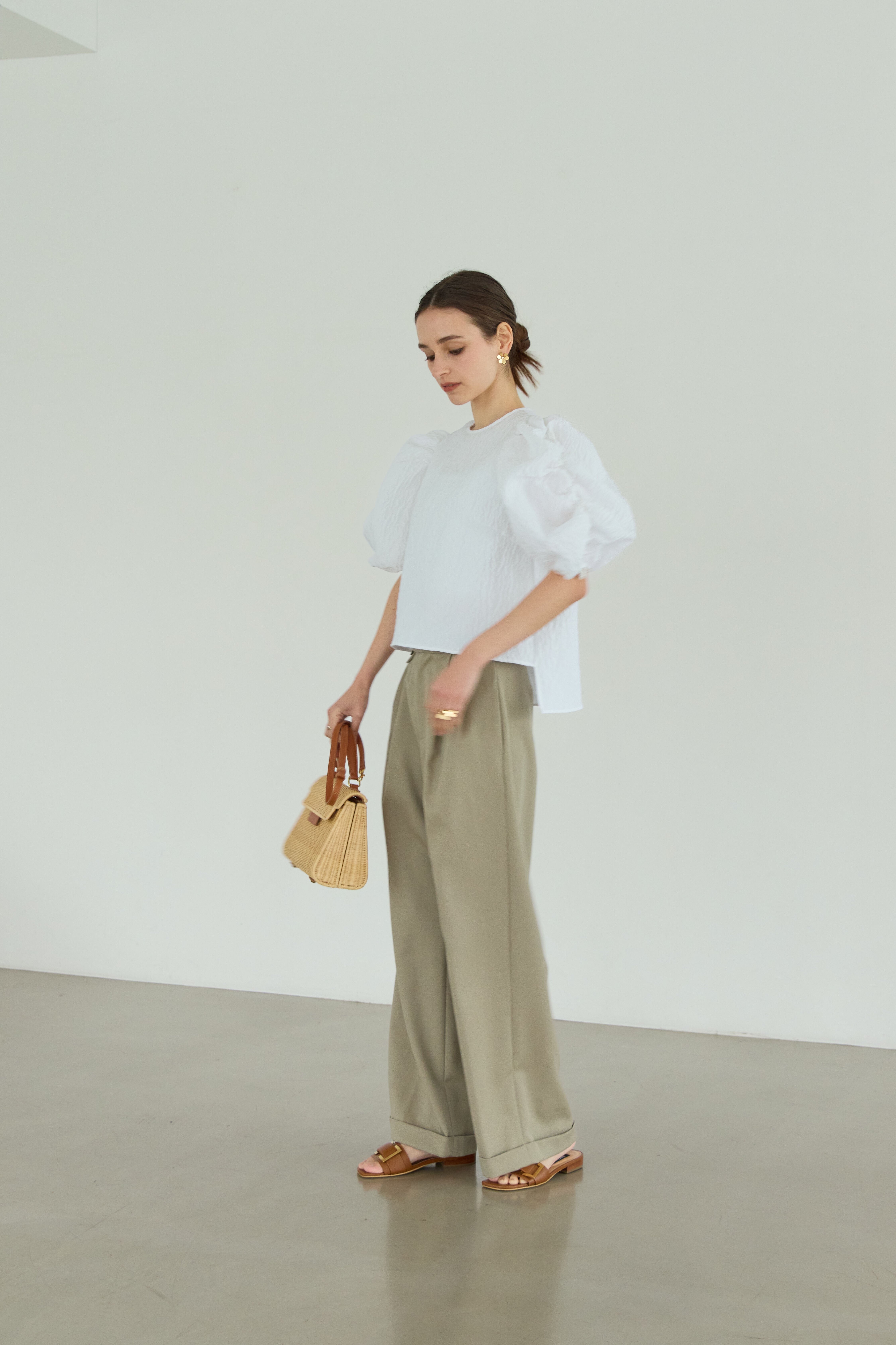 身頃はミニマルに整え、素材の美しさが引き立つバランスに。