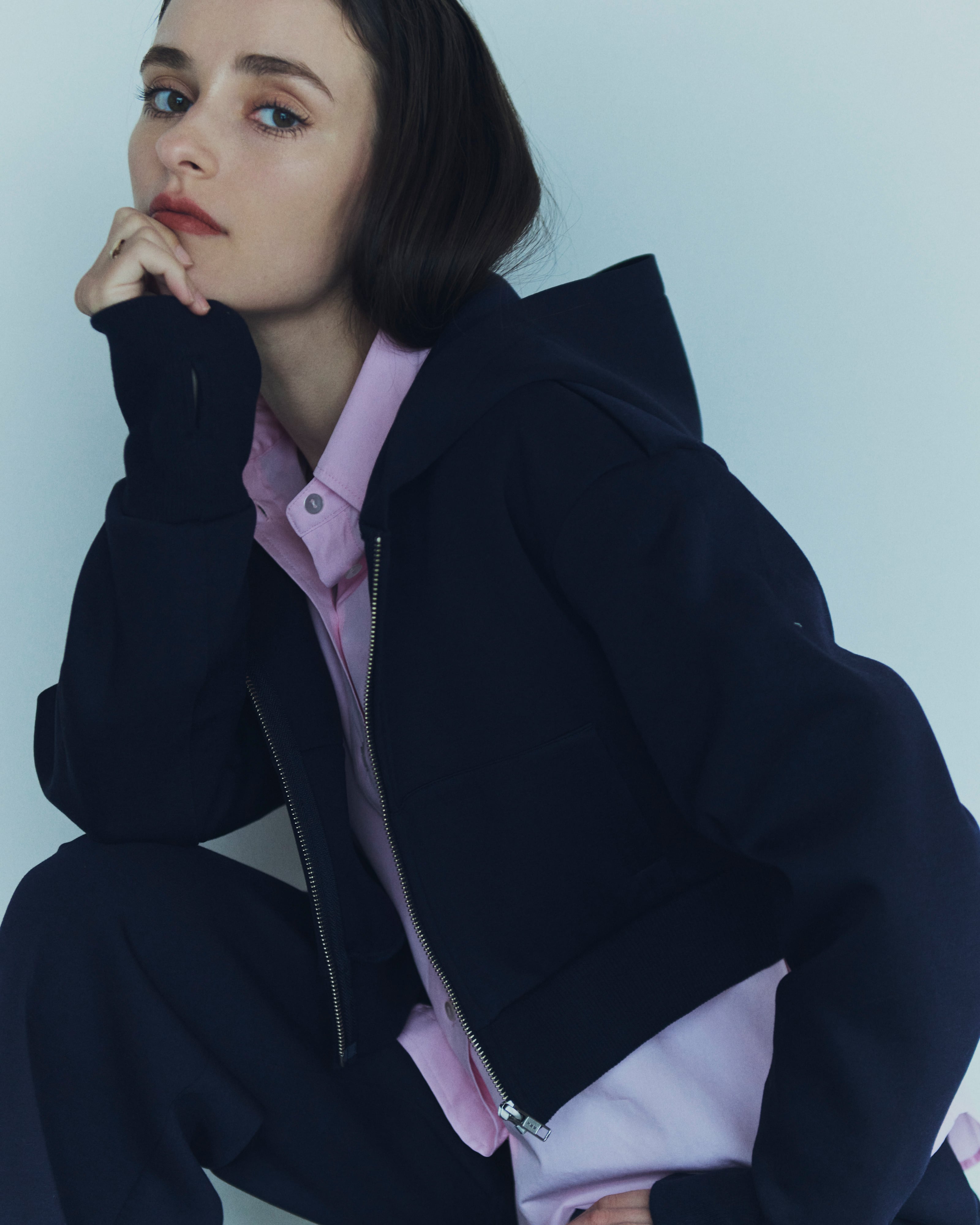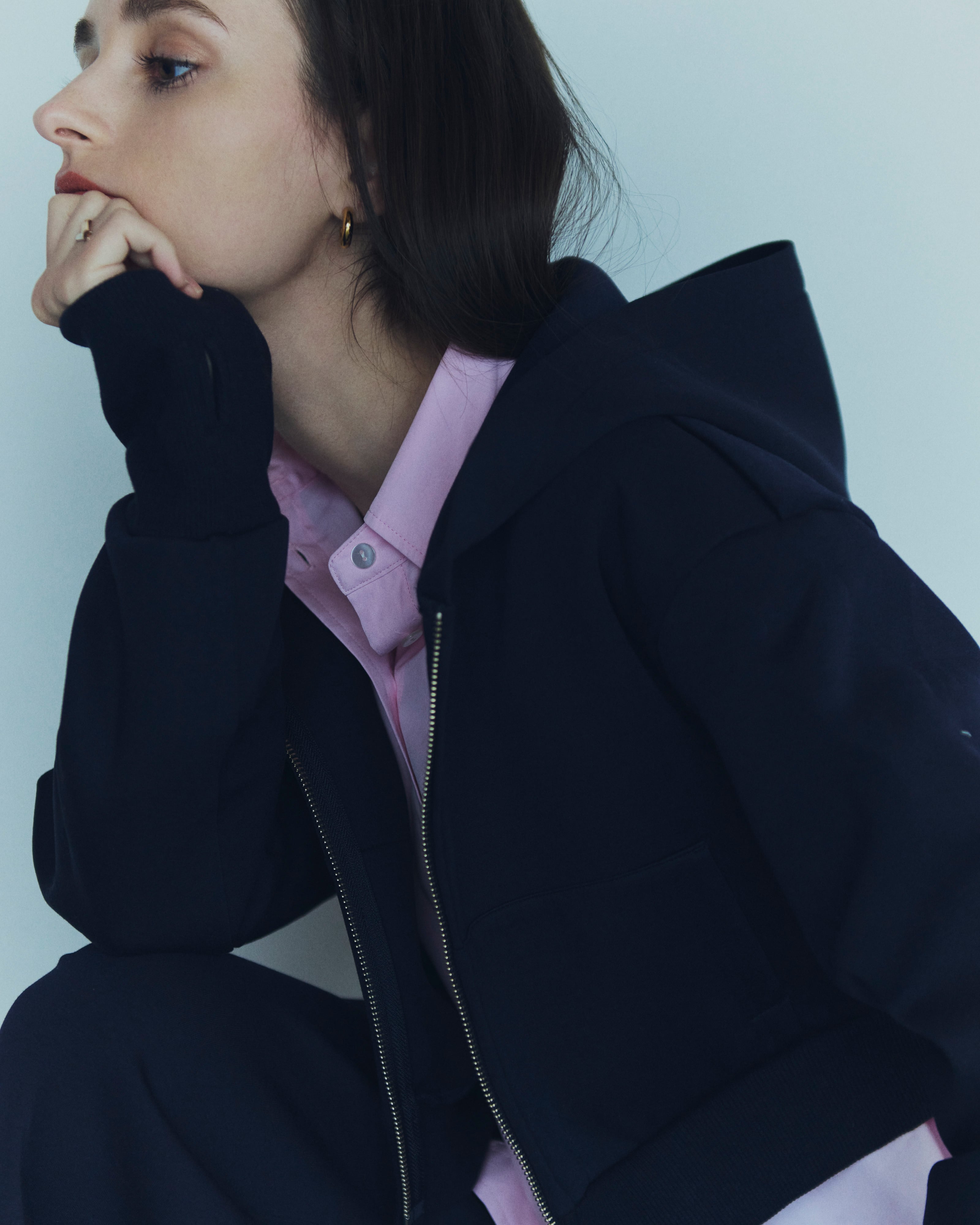 大人の女性が着れる”品よく上質なスウェット”でご好評いただいている大人のためのスウェットシリーズから、新たにジップアップパーカーが登場!
